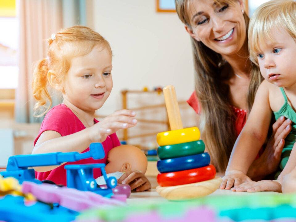 Children in nursery school learning and playing games